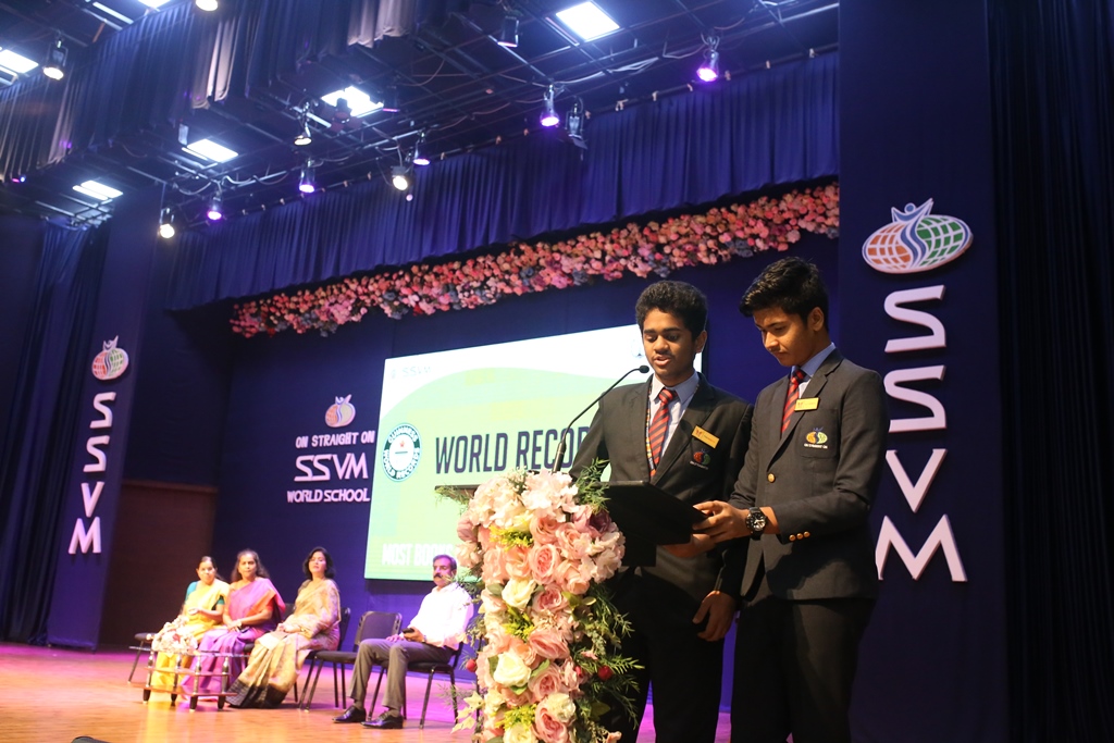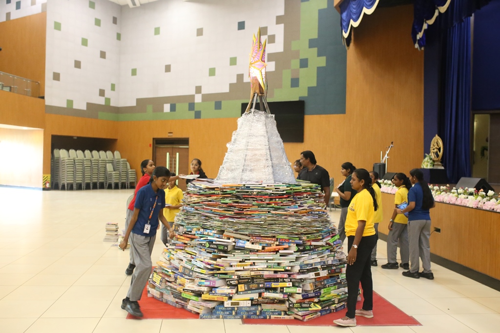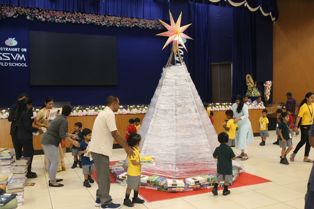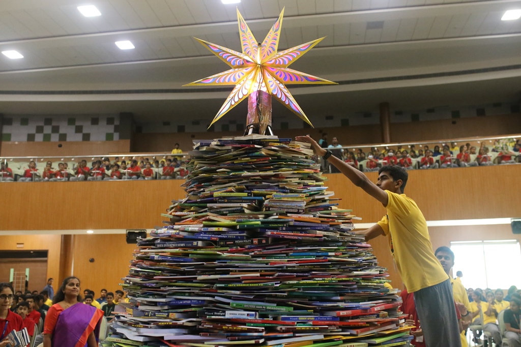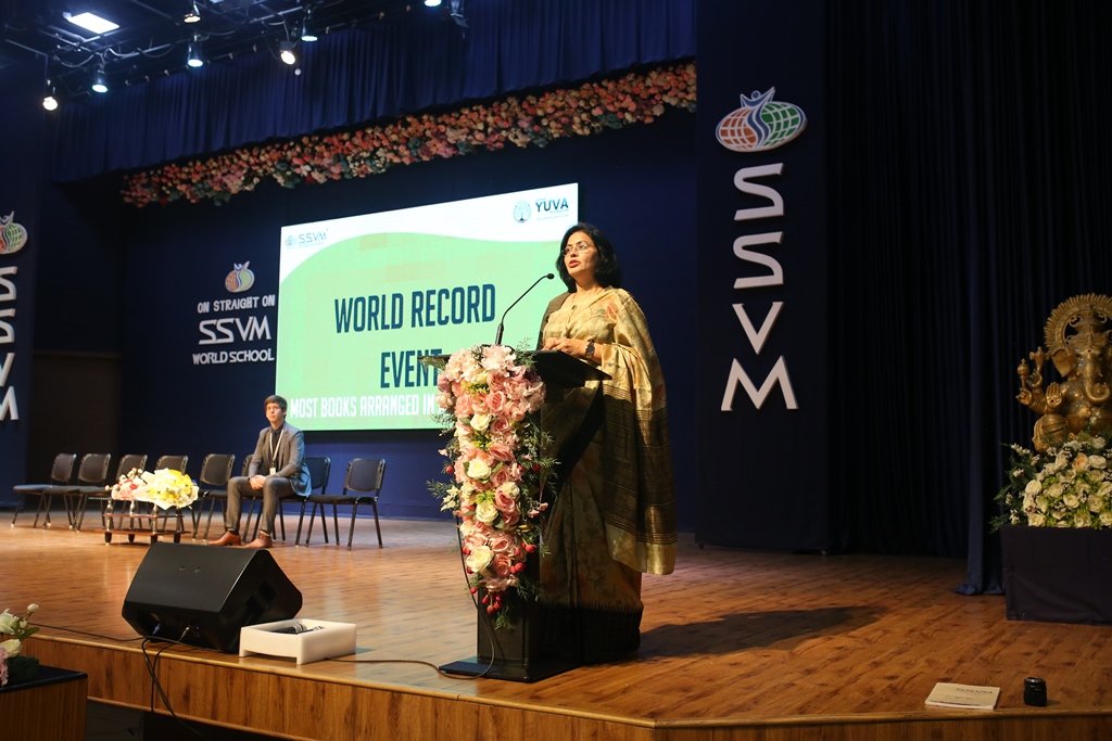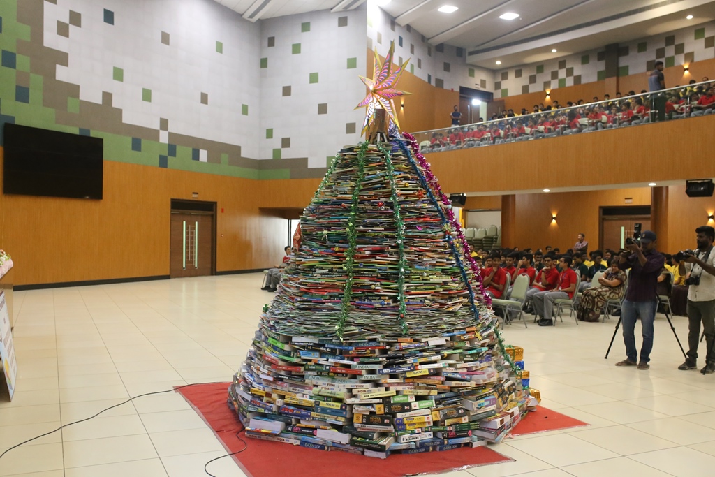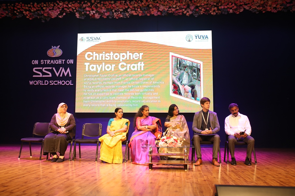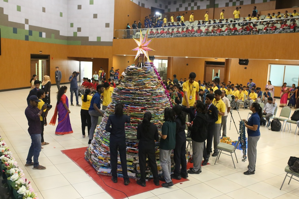 SSVM Institutions’ Yuva Club set a World Record Chirstofer Taylor Craft presents the record certificate to Manimekalai Mohan in the presence of Chandrans Yuva Foundation members and the student participants. Chandrans Yuva Foundation & Yuva Club students of SSVM World School came together to structure a 15 feet tall Christmas Tree look alike using 12,000 books in 1.5 hours and successfully set a World Record at the school premises.Chirstofer Taylor Craft from World Records Union, Florida judged the attempt and handed over the official world record certificate to the Yuva Club Students of the school in a ceremony.