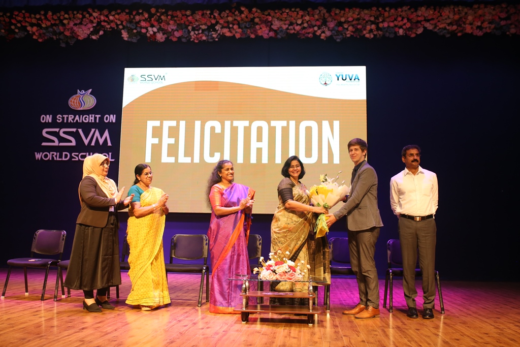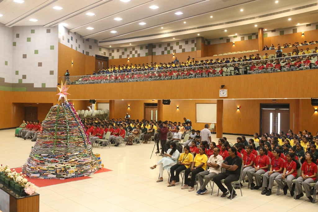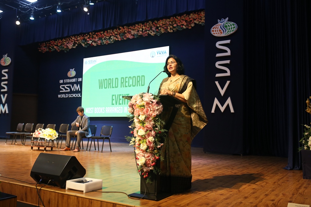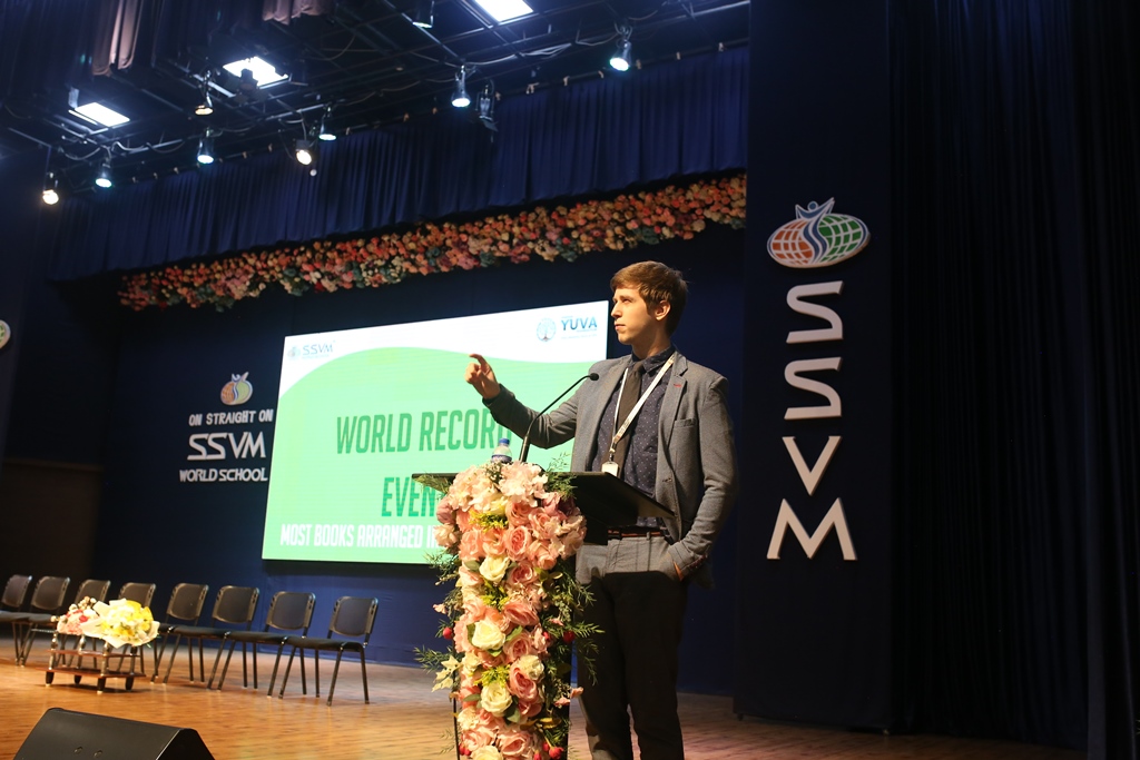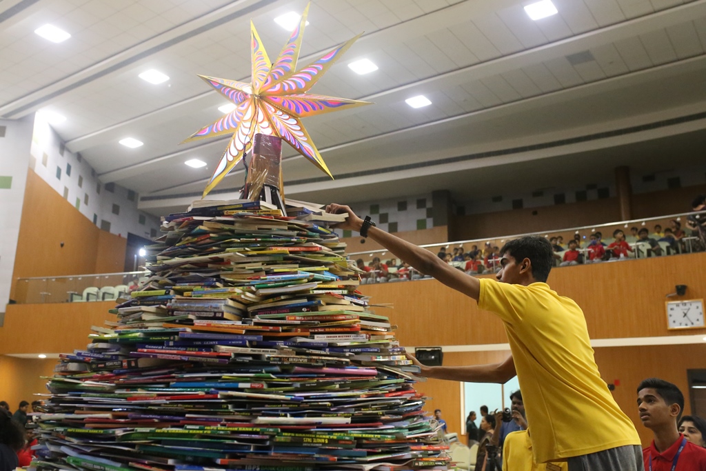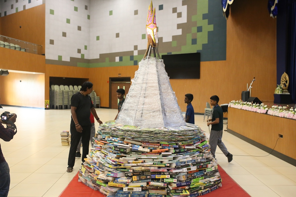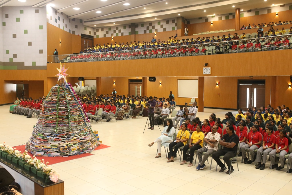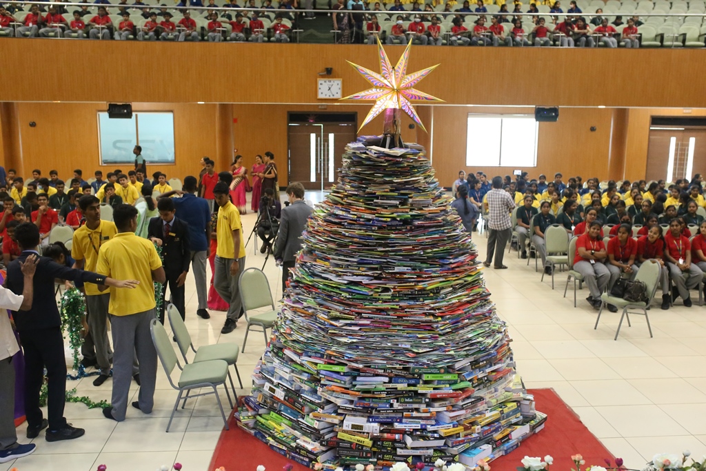 SSVM Institutions’ Yuva Club set a World Record Chirstofer Taylor Craft presents the record certificate to Manimekalai Mohan in the presence of Chandrans Yuva Foundation members and the student participants. Chandrans Yuva Foundation & Yuva Club students of SSVM World School came together to structure a 15 feet tall Christmas Tree look alike using 12,000 books in 1.5 hours and successfully set a World Record at the school premises.Chirstofer Taylor Craft from World Records Union, Florida judged the attempt and handed over the official world record certificate to the Yuva Club Students of the school in a ceremony.
