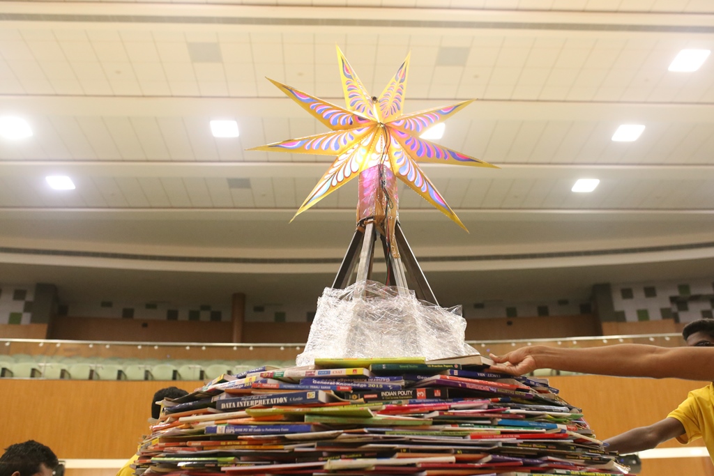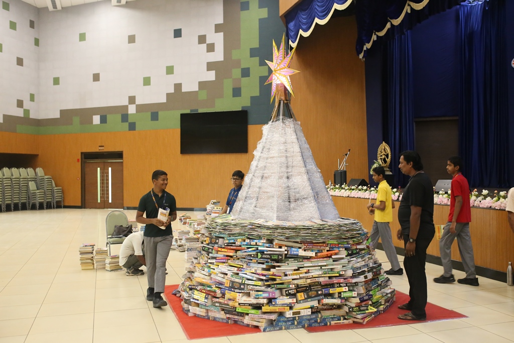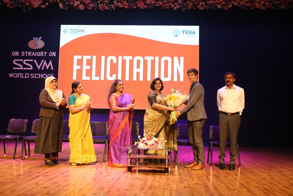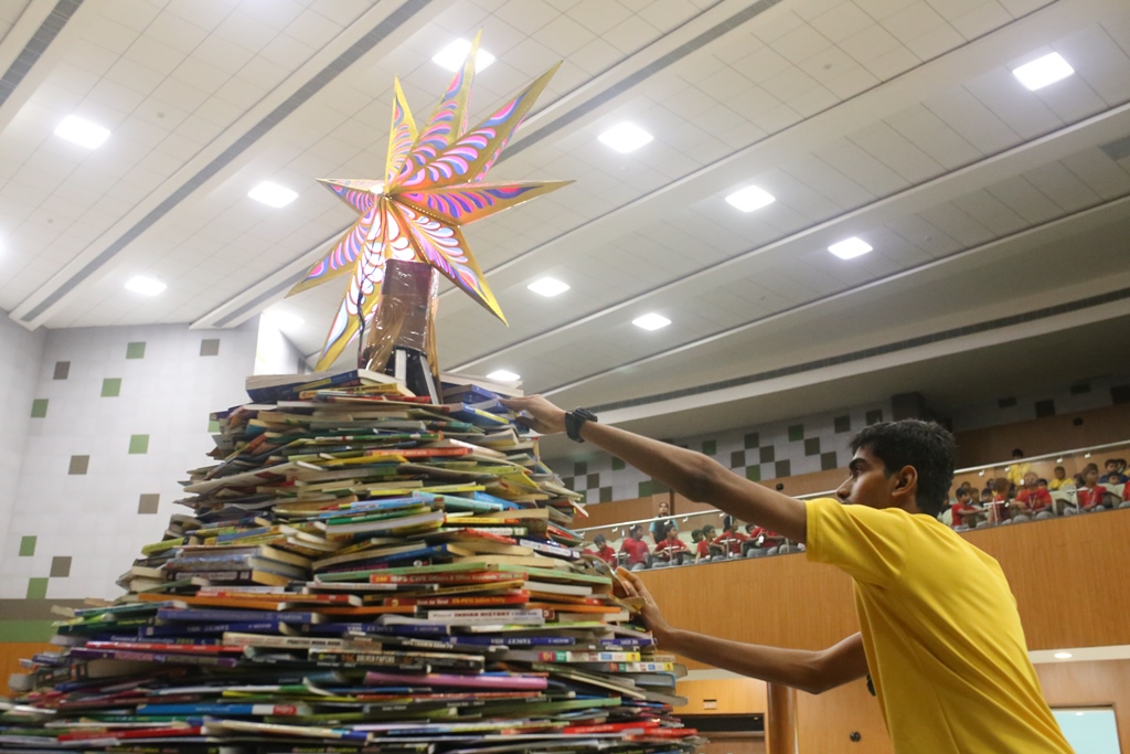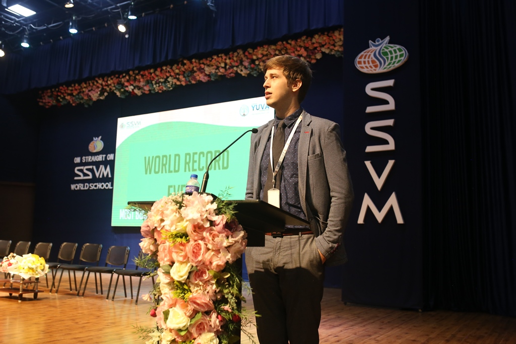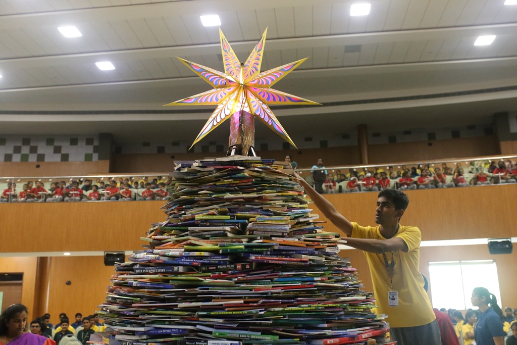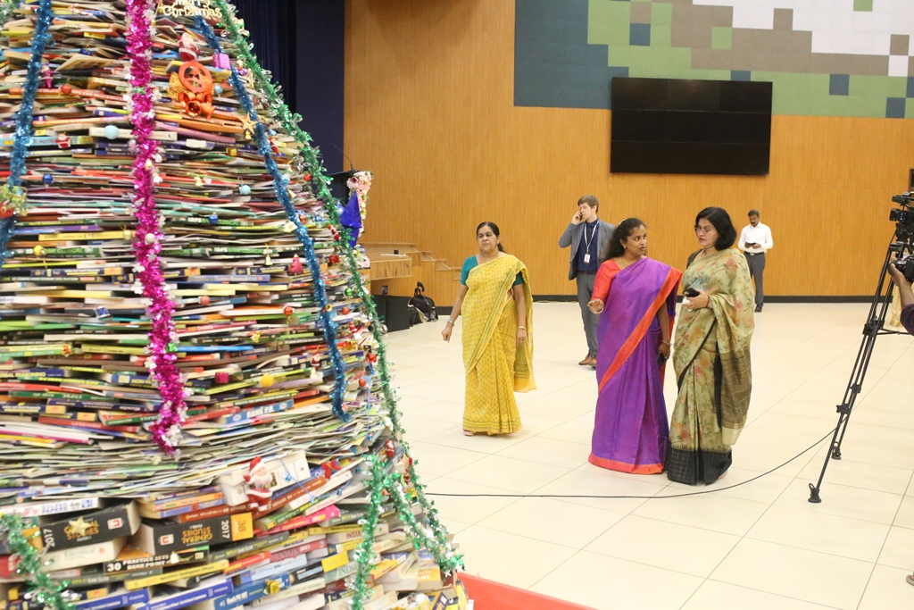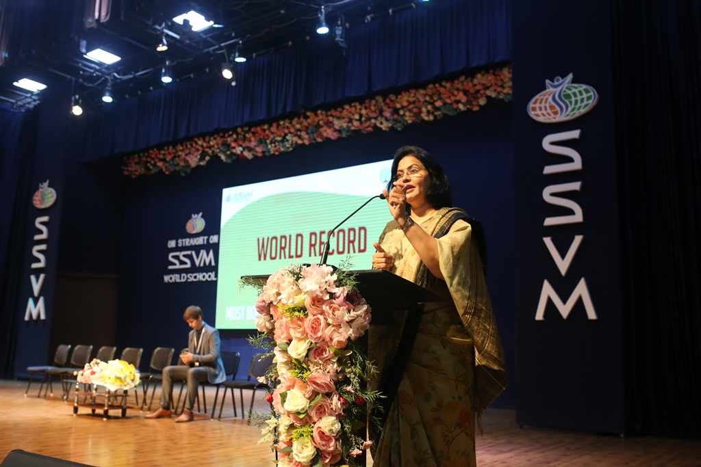 SSVM Institutions’ Yuva Club set a World Record Chirstofer Taylor Craft presents the record certificate to Manimekalai Mohan in the presence of Chandrans Yuva Foundation members and the student participants. Chandrans Yuva Foundation & Yuva Club students of SSVM World School came together to structure a 15 feet tall Christmas Tree look alike using 12,000 books in 1.5 hours and successfully set a World Record at the school premises.Chirstofer Taylor Craft from World Records Union, Florida judged the attempt and handed over the official world record certificate to the Yuva Club Students of the school in a ceremony.