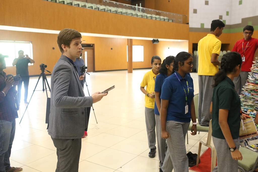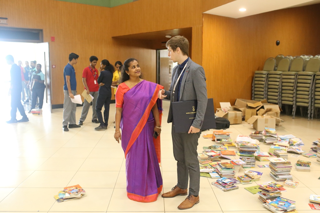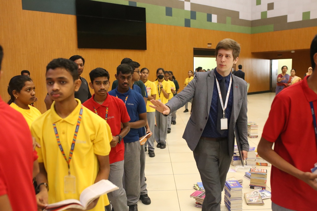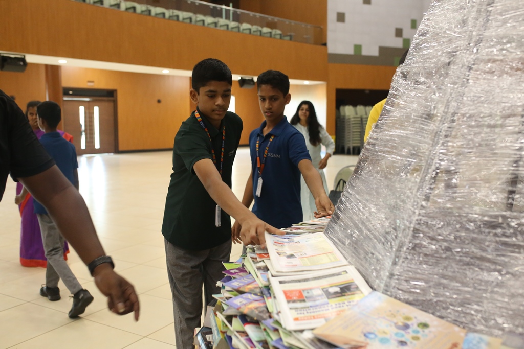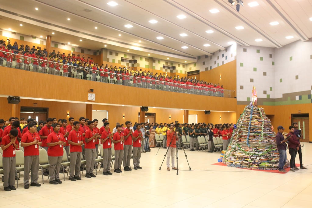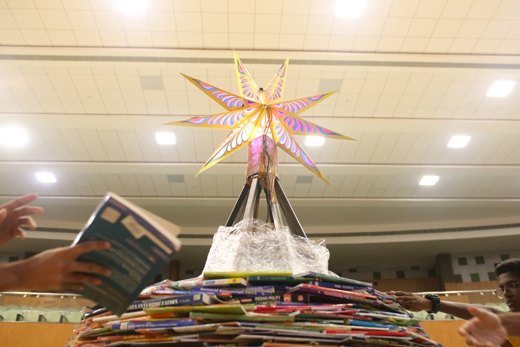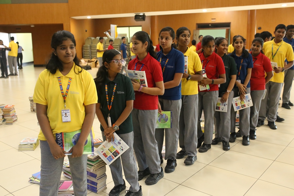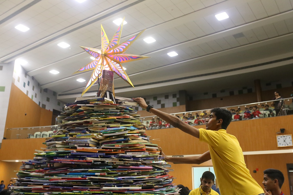 SSVM Institutions’ Yuva Club set a World Record Chirstofer Taylor Craft presents the record certificate to Manimekalai Mohan in the presence of Chandrans Yuva Foundation members and the student participants. Chandrans Yuva Foundation & Yuva Club students of SSVM World School came together to structure a 15 feet tall Christmas Tree look alike using 12,000 books in 1.5 hours and successfully set a World Record at the school premises.Chirstofer Taylor Craft from World Records Union, Florida judged the attempt and handed over the official world record certificate to the Yuva Club Students of the school in a ceremony.
